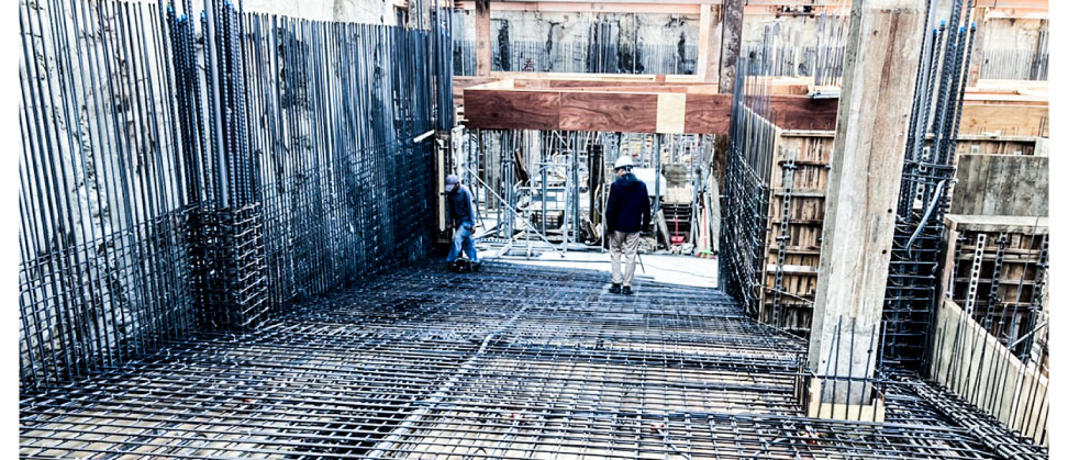 時序進入秋高氣爽的十一月,置關重要的筏式基礎工程施作完成,在精準掌握施工進度之下,《恆山首恆》接著進行地下二樓的結構體工程,其中包含模板組立、鋼筋綁筋、水電配管、灌漿、拆模等工程。