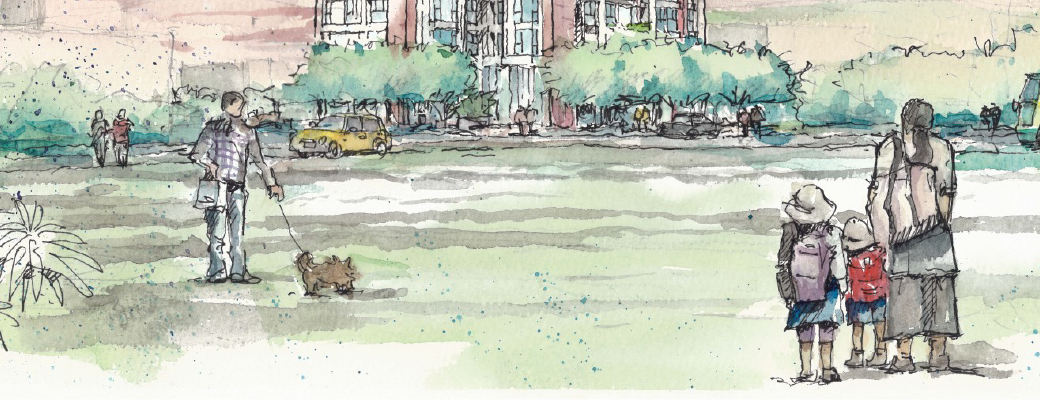 基地三向開放街廓,我們創造了讓光與風流動的空間和開闊的視野,讓每戶格局都有充足陽光與舒適尺度。為了使鄰里關係更能互動相融,我們在街廓退縮的基地內造了一座以三合院埕為概念的廣場式水池前庭,延續視覺景深,如同在地著名古蹟《摘星山莊》門樓內一片平坦寬闊的前埕,埕前有一泓半月池及一片蒼翠的綠林,行經於此都能享受濃密綠意與一池寧靜。公設規劃上,以共享空間人文質感為本案定調,空間機能用途豐富,輔以在地文化精神之陣列式穿廊,嘗試連結自地歷史與未來,讓住所成為生活的容器。